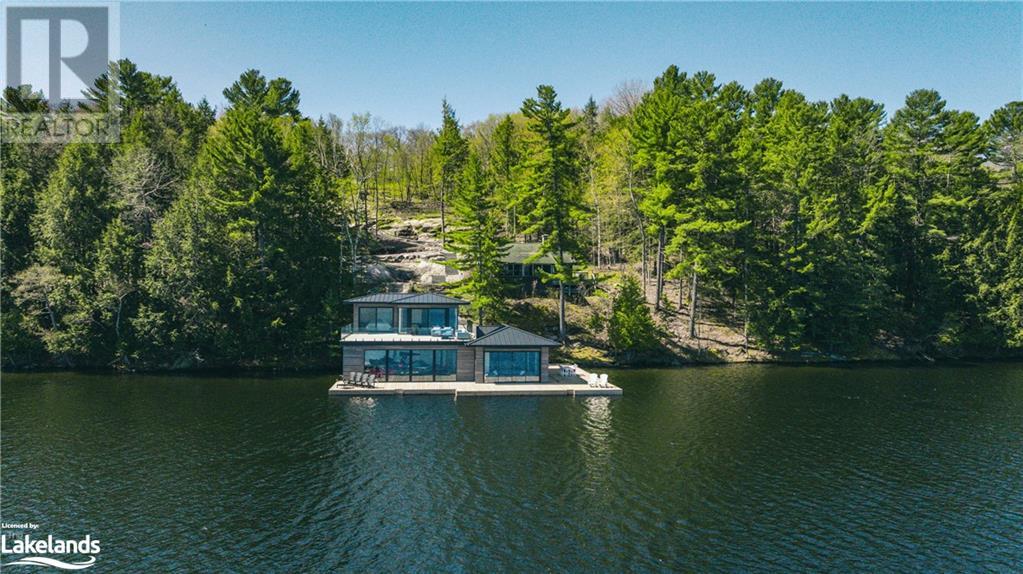 South Lake Rosseau. Prime Port Sandfield location. Over 400 feet of deep water frontage with a brand new 3 slip 2 storey boathouse. Big water view, great privacy. 1930's water's edge cottage affords a grandfathered setback and site plan approval is in place for a new cottage with over 5,000 sq. ft. of finished living space between 2 levels (main floor and lower level walkout) - drawings available