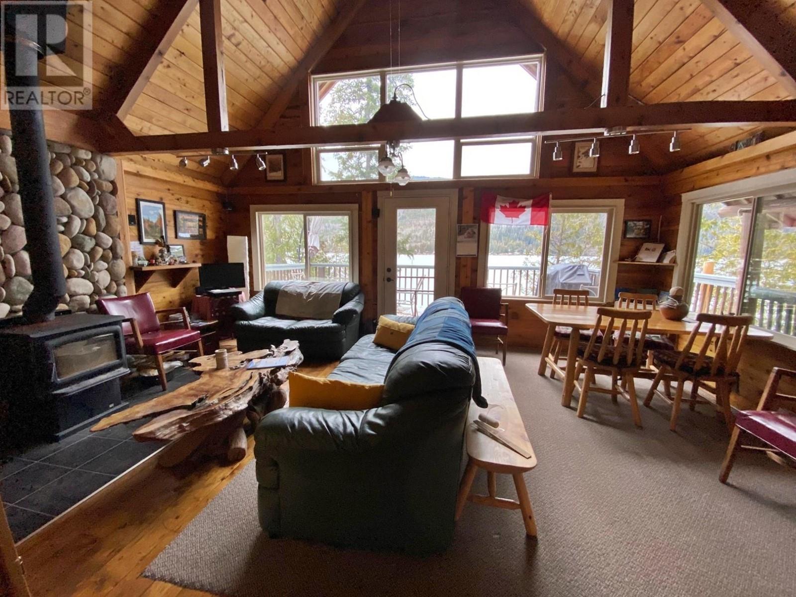 Cabin offers captivating Lakefront year round recreation or simple living paradise. This Crown Leasehold Lakefront property including Dock Moorage Permit is located on the well known, warm waters of East Barriere Lake, located just minutes from Barriere. Property is in the area of many recreational venues that offers Boating, Hunting, Fishing, ATVing and Snowmobiling. Panabode construction with wo