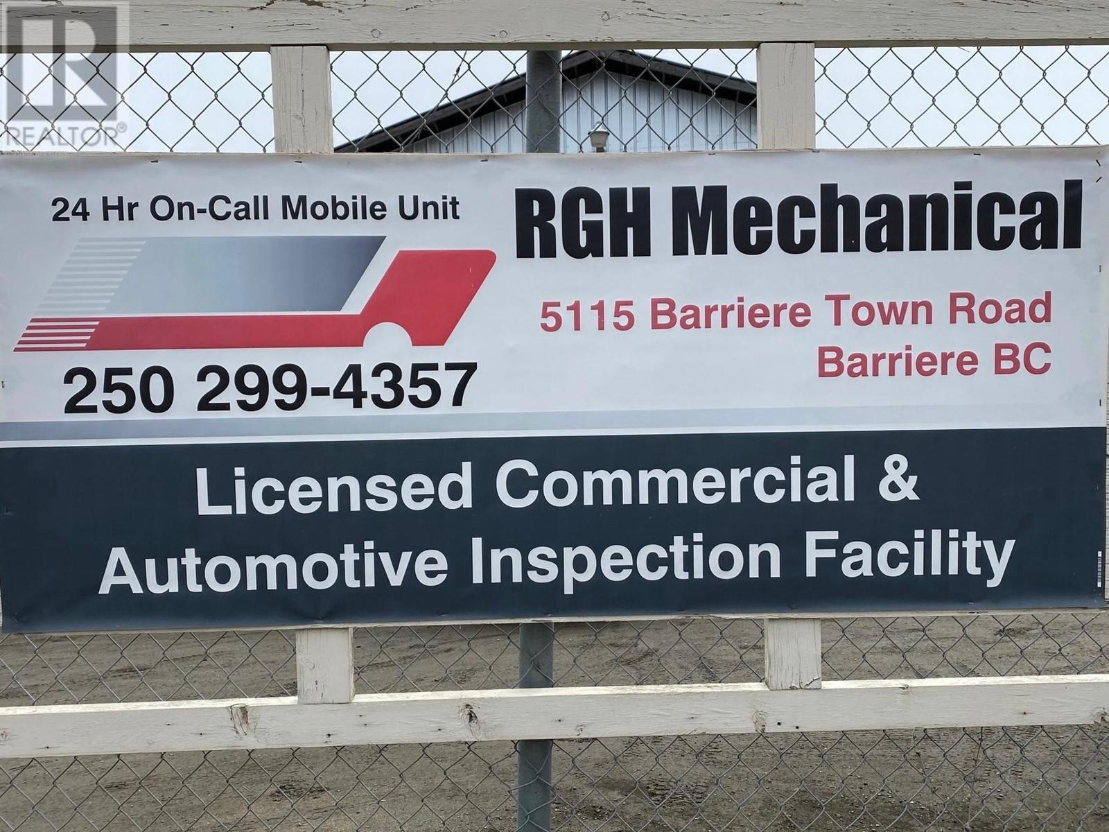 RGH Mechanical - Business, Land & Buildings, Living Quarters all rolled in one. Walk in Ready For Heavy Duty Inspection Station and Repair Business. Licensed CVI & Automotive Repair Facility. Inspection Facility renovated in 2018 to include 60x20' Bays w garage doors to meet BC CVSE regulation. Prime location in the Barriere Industrial Park on the corner of Hwy 5 and Barriere Town Rd. Direct signa