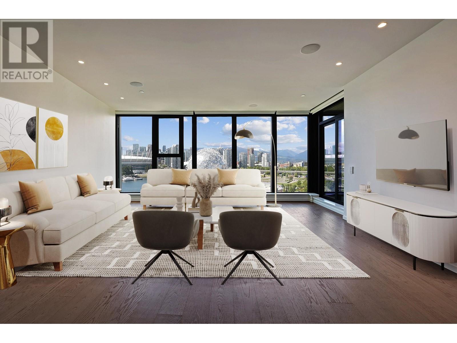 Experience Luxury at Tesoro, False Creek's Premier Waterfront Boutique Building by Concert! Immerse yourself in 2000sqft of elegance with unobstructed water,mtn,and city views. Stunning 2-bedroom plus large den (3rd bd) residence features a 200sqft covered balcony. Custom Poliform kitchen is a chef's dream, with Gaggenau integrated appliances, motorized cabinetry, marble backsplash, and island fro