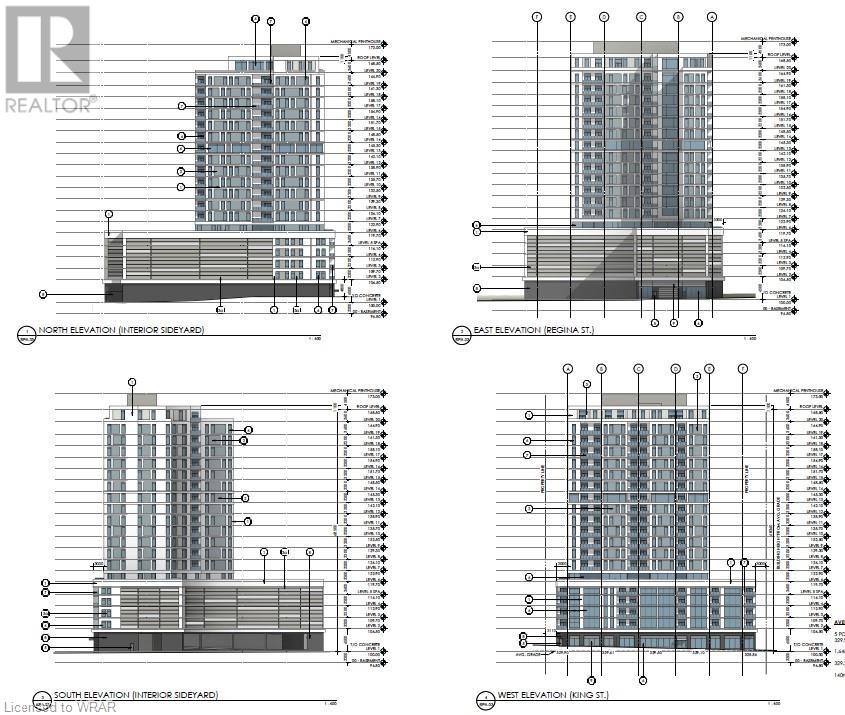 ite from Regina Street North. Parking will be accommodated within the podium and in one level of underground parking, with the ground floor proposed to contain multiple amenity rooms (one each facing King and Regina Streets) and the lobby facing King Street. A total of 223 units (261 beds) are proposed, together with 193 vehicular parking spaces and 165 bicycle parking spaces (id:25314)