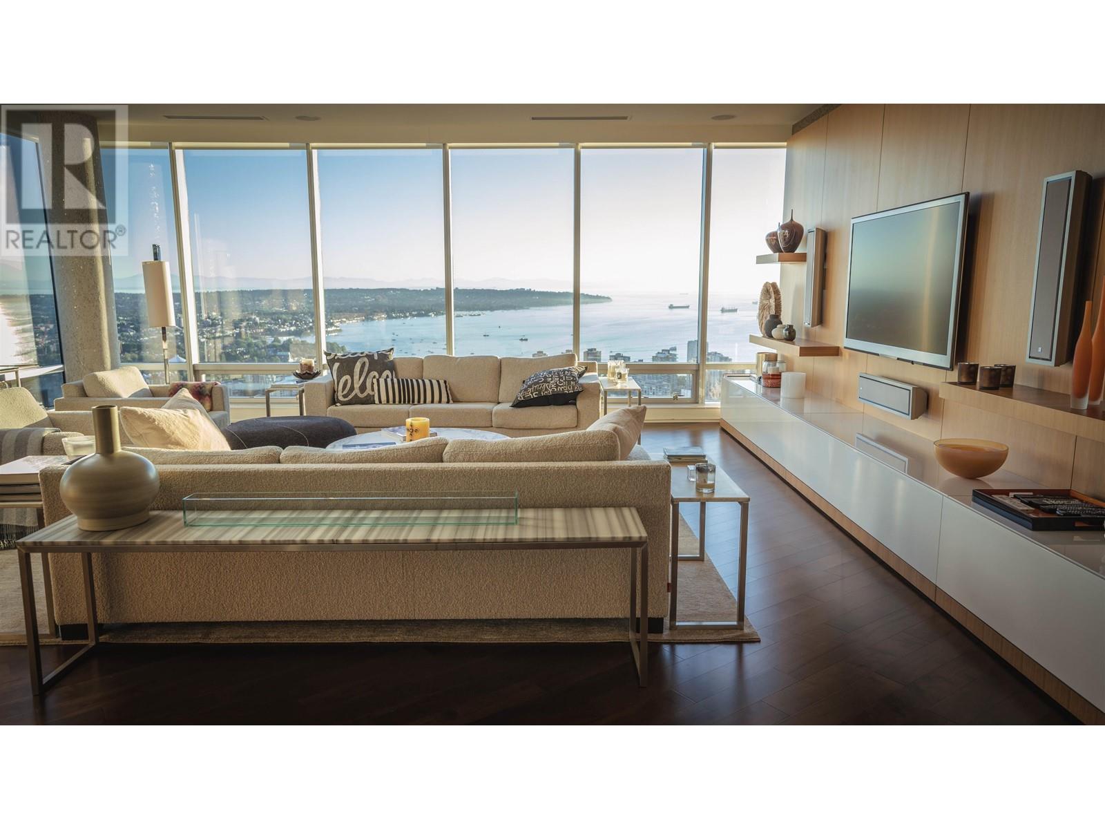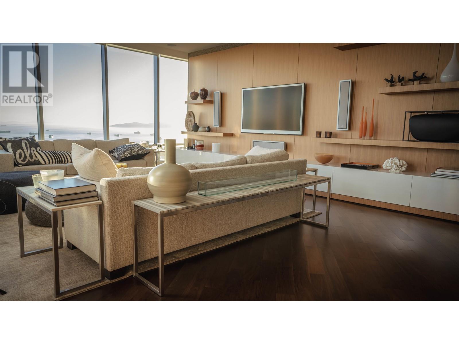 Spectacular 2-Bedroom Residence located in prestigious Living Shangri-la, offering panoramic unobstructed, picturesque view of English Bay, Stanley Park and City skyscrapers. This luxury residence has many features including over-height ceilings, distributed music systems, Lutron shades and light system and chef's Boffi kitchen. Other features include 2 side by side parking stalls with EV charger,